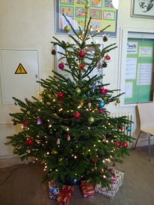 Wir bedanken uns beim Förderverein für den schönen Weihnachtsbaum, der unser Foyer vor dem Sekretariat schmückt:
